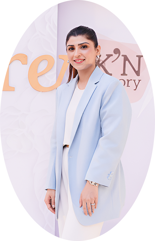 She specializes in age-defying treatments and believes in a comprehensive approach — addressing lifestyle, nutrition, and skincare alongside in-clinic procedures for truly transformative results.
